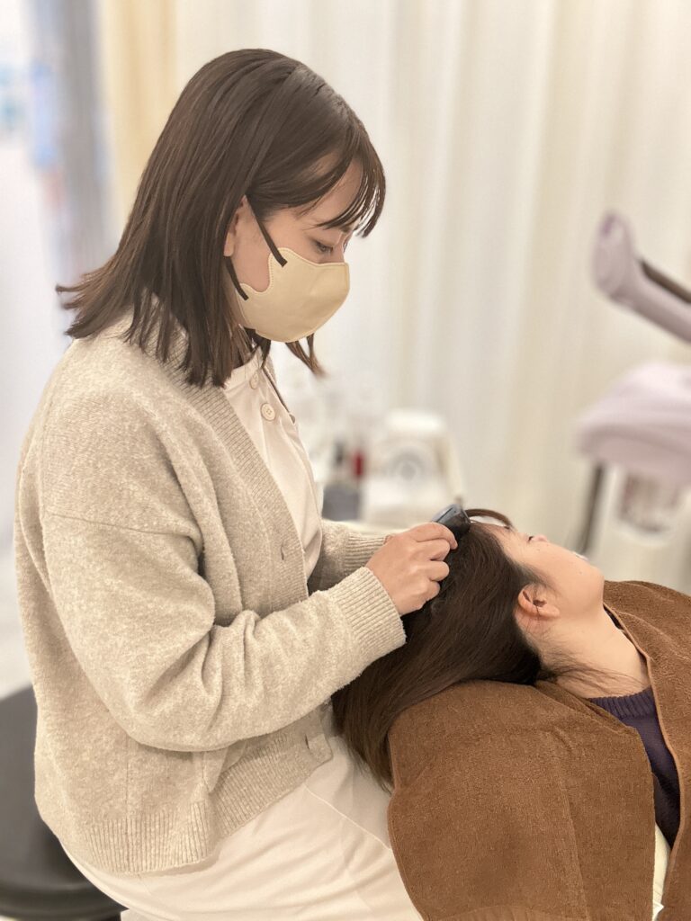 頭皮をほぐすと血流が良くなりお顔のトーンも明るく